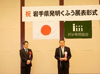 11月14日(金)に秋田県秋田市「ホテルメトロポリタン秋田」にて表彰式が行われました。各地方において優秀な発明、考案、または意匠を完成された方々、発明等の実施化に尽力された方々の功績を称え顕彰するものです。