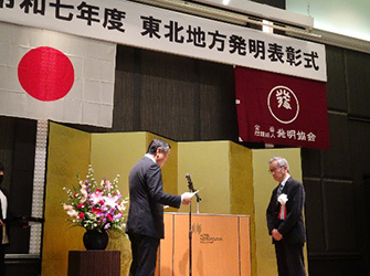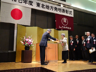 11月14日(金)に秋田県秋田市「ホテルメトロポリタン秋田」にて表彰式が行われました。各地方において優秀な発明、考案、または意匠を完成された方々、発明等の実施化に尽力された方々の功績を称え顕彰するものです。